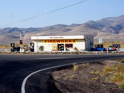 Nixon, Nevada is a small town set on State Route 447. It is approximately 18 miles from Rt80 heading north towards Gerlach, Nevada. It was named in honor of Senator George Stuart Nixon (R), who represented Nevada in the US Senate from 1905-1912. The Pyramid Lake Paiute Reservation was established in 1859 but was not officially recognized until 1879. It is an Indian Reservation and Nixon is the seat of tribal government of the Pyramid Lake Paiutes. It also has a terrific Tribal Museum and Visitor Center. Its main income is catching speeders heading north to Gerlach and for two days after Burning Man it is the world's biggest car wash and trash collection depot. While the town leaves a lot to be desired it does have the Indian Museum, something worth visiting, and an outstanding High School Campus, solar powered and everything. And look out for those neat late model SUV Cop Cars.